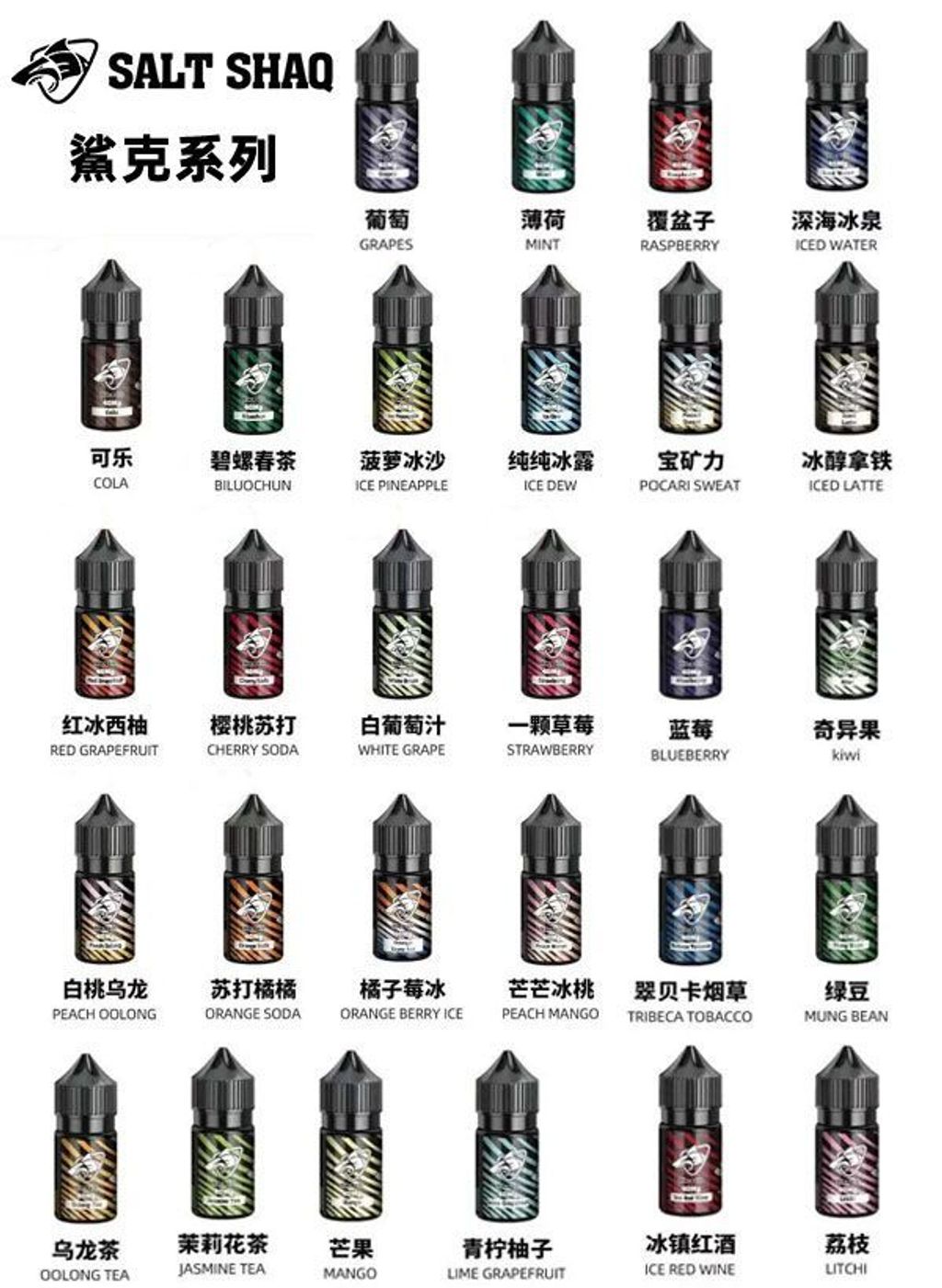 鯊克煙油(SALT SHAQ)經過多年的研發和發展, 鯊克品牌電子煙 / 電子菸煙油適配市場主流各種品牌的電子煙煙彈,