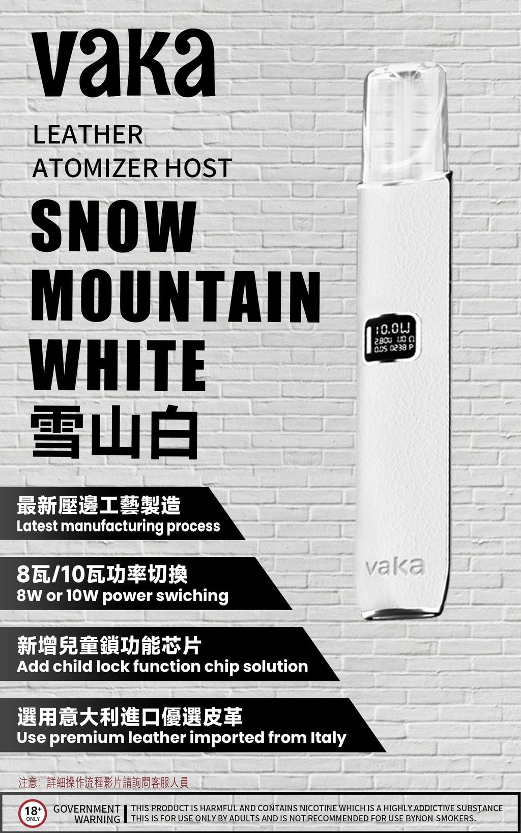 • 兩段調節瓦數:8W和10W,無論你是喜歡輕柔還是強勁的口感,VAKA都能滿足你的需求!